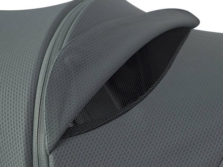 Projektanci nie zapomnieli również o wentylacji. Oprócz typowych wentylatorów znajdujących się w budce przeciwsłonecznej, siedzisko wózka MOI+ posiada specjalny system wentylacji w skorupie oparcia.