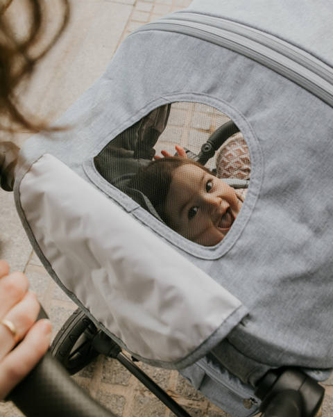 Dzięki naszej 4-stopniowej regulowanej budce przeciwsłonecznej Twoje dziecko jest zawsze chronione pod filtrem UV 50+