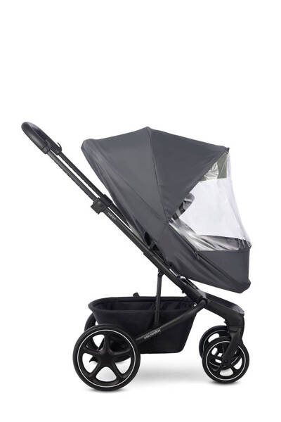 Duży zamykany kosz na zakupy, regulowany pałąk i przestronna gondola z budką w rozmiarze XL, chroniącą przed słońcem i deszczem.