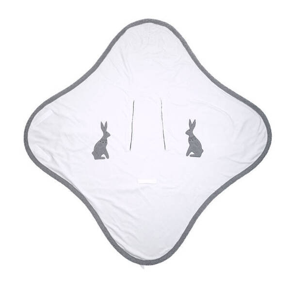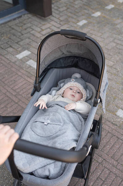 Zapewnia dziecku wygodę, przytulność i ciepło podczas jazdy samochodem, a także spacerów z wózkiem na świeżym powietrzu czy drzemki w domu. Z tyłu ma otwory do przełożenia pasów bezpieczeństwa. Z przodu jest zapinany na rzepy i wyposażony w niewielką kieszonkę, np. na smoczek czy chusteczkę. Dla dodatkowego komfortu i ochrony można w nim stworzyć kaptur, pociągając zaciskowy sznurek przy górnym rogu.