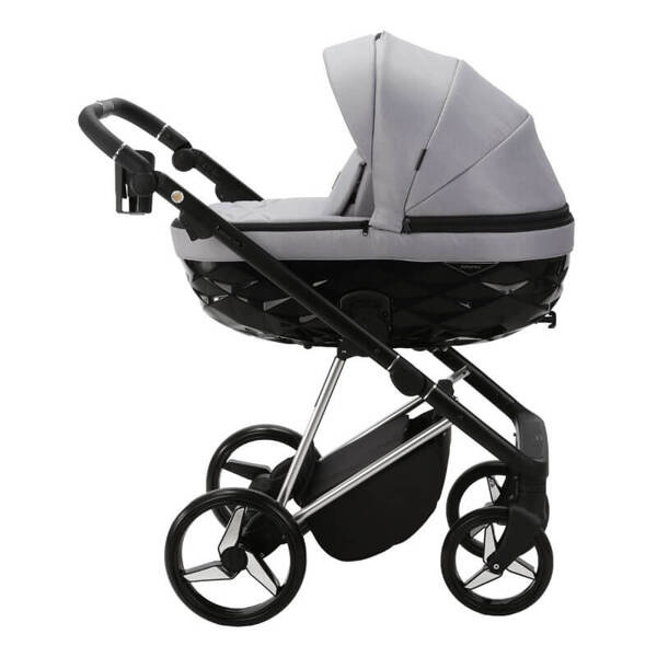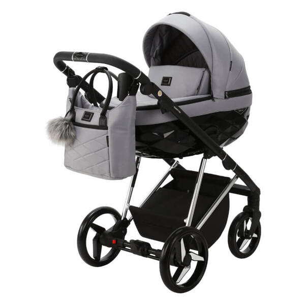 Wielofunkcyjny wózek dziecięcy QUANTUM posiada dużą, stylową gondolę  ozdobioną trójwymiarowym wzorem, składaną budkę z chowanym daszkiem przeciwsłonecznym i zamykanym panelem wentylacyjnym oraz torbę z dodatkowymi akcesoriami i miękką wyściółkę z pikowanej bawełny.