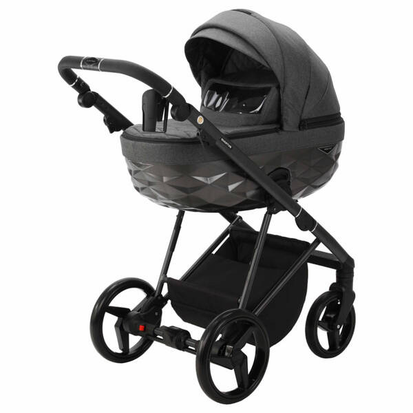 Wielofunkcyjny wózek dziecięcy QUANTUM posiada dużą, stylową gondolę  ozdobioną trójwymiarowym wzorem, składaną budkę z chowanym daszkiem przeciwsłonecznym i zamykanym panelem wentylacyjnym oraz torbę z dodatkowymi akcesoriami i miękką wyściółkę z pikowanej bawełny.