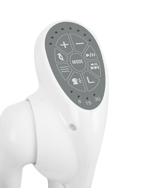 Akompaniament muzyczny do wyboru: śpiew ptaków i szemranie wody, kojące dziecięce melodie i możliwość podłączenia zewnętrznego dysku USB z Twoją muzyką.