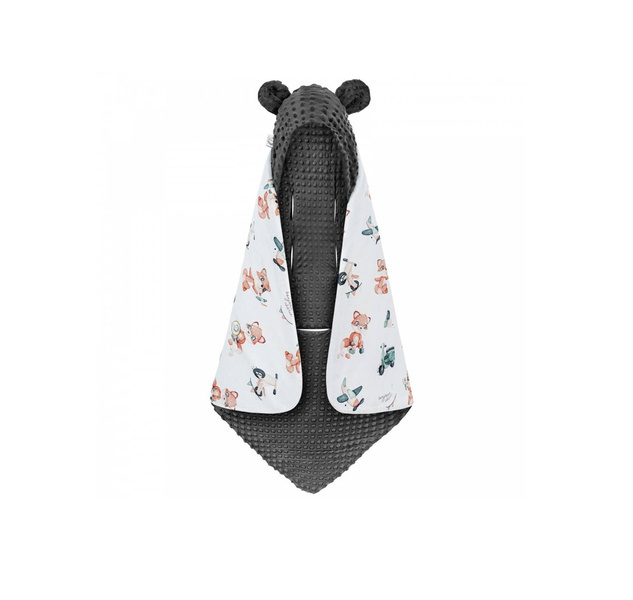 Środek kocyka wypełniony jest antyalergiczną włókniną wysokopuszystą silikonową. Zapewnia ona dziecku ciepło oraz wygodę podczas użytkowania. Kołderka idealnie sprawdza się od pierwszych dni życia, do łóżeczka, na popołudniową drzemkę, do wózka, nosidełka a także jako ulubiona kołderka na wszelkie wyjazdy lub jako mięciutka mata dla dziecka.