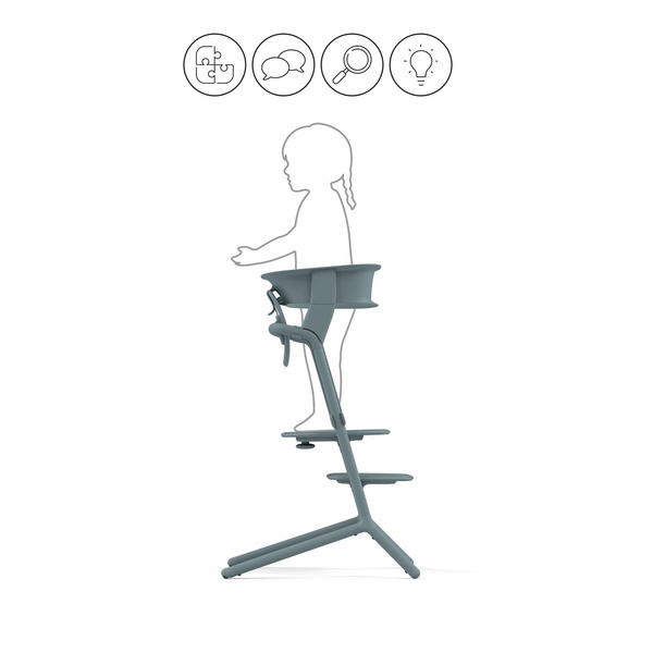 Zestaw wieży edukacyjnej Lemo mocuje się do krzesełka Lemo, co pozwala ciekawskim dzieciom odkrywać domowe otoczenie. Łatwo przypina się do krzesełka Lemo, co jest bardzo wygodne, ponieważ nie potrzeba osobnej wieży edukacyjnej.