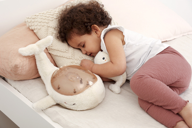 Wieloryb Tranquil Whale to muzyczna pluszowa zabawka z wizualnymi i dźwiękowymi efektami, które zmienią pokój Twojego dziecka w przytulną oazę spokoju.