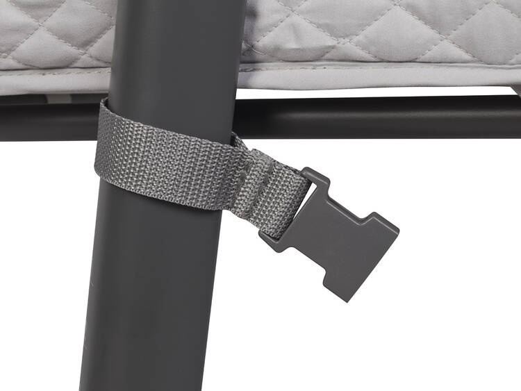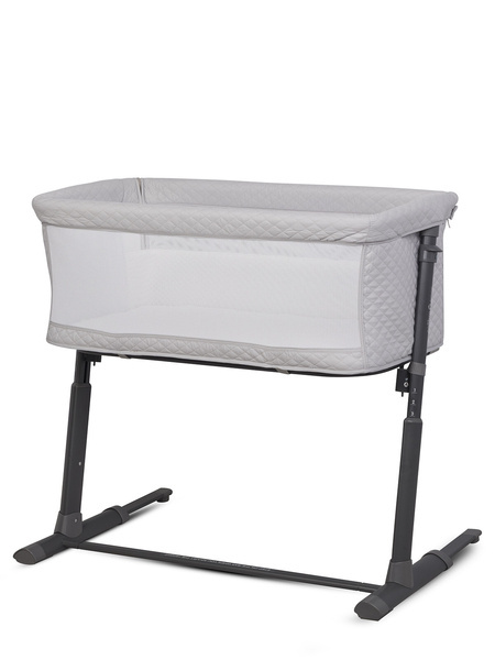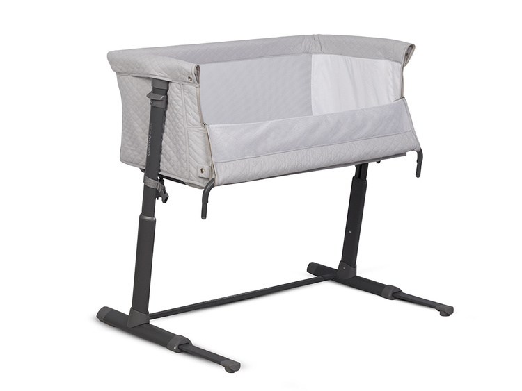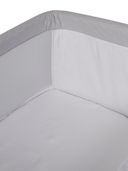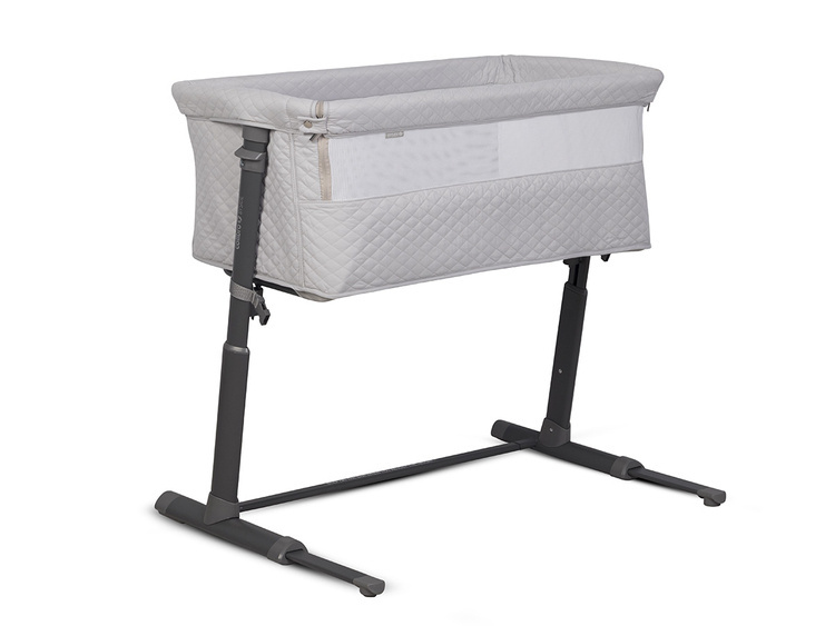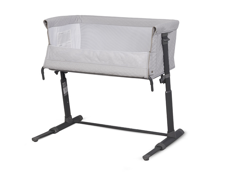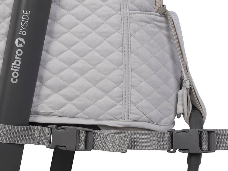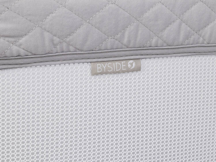 Tapicerka zewnętrzna wykonana została z modnej pikowanej tkaniny z delikatnym meszkiem. Dzięki nie łóżeczko BYSIDE prezentuje się bardzo gustownie i jest przyjemne w dotyku. W połączeniu z grafitowym stelażem z pewnością wkomponuje się w wystrój każdej sypialni.