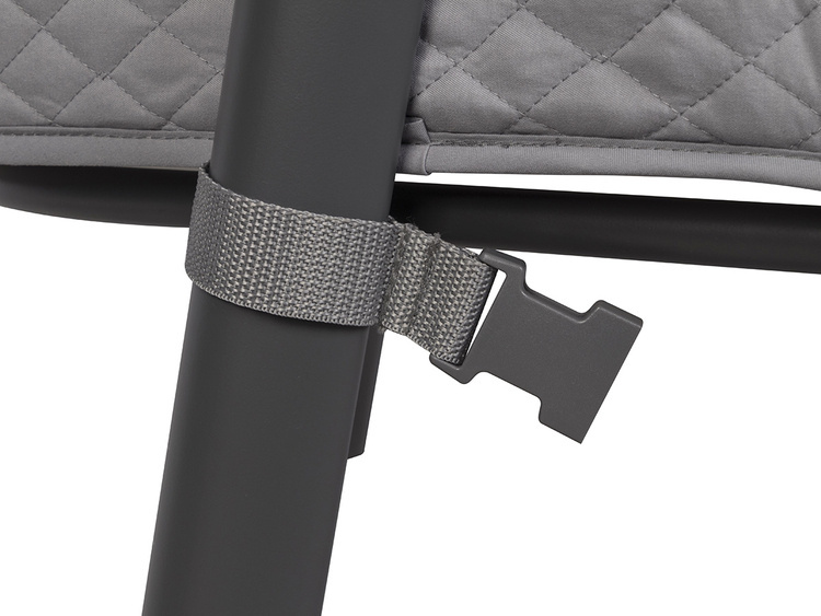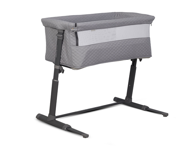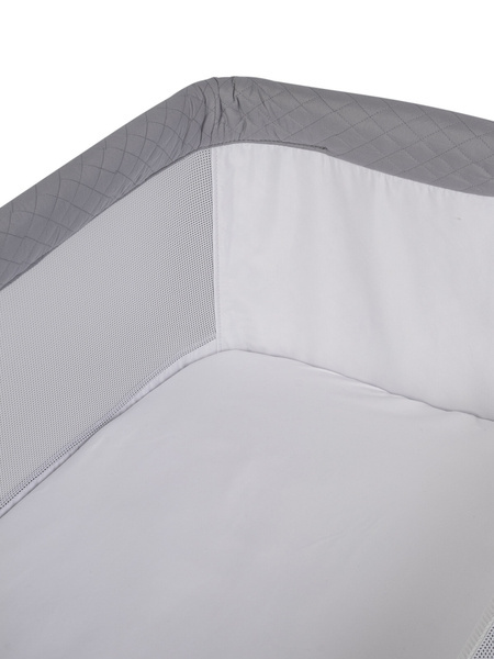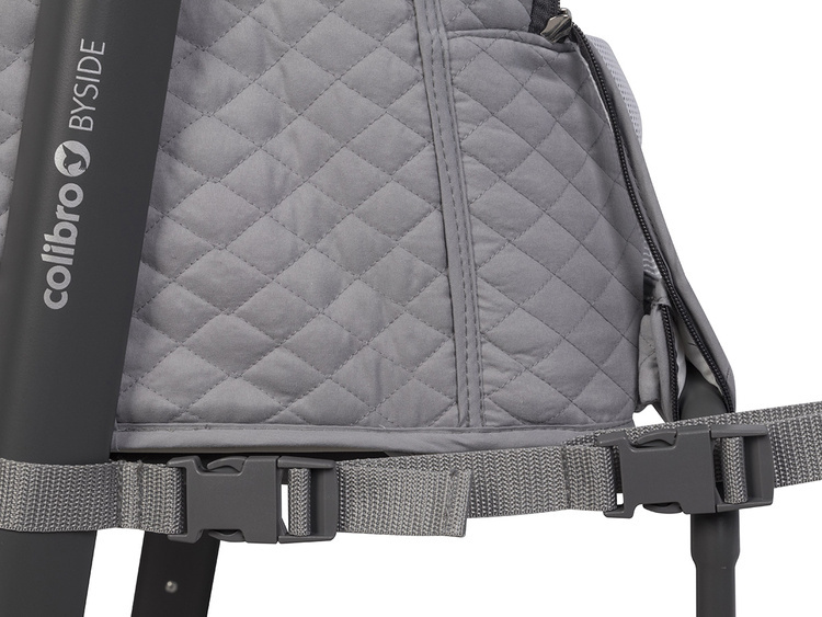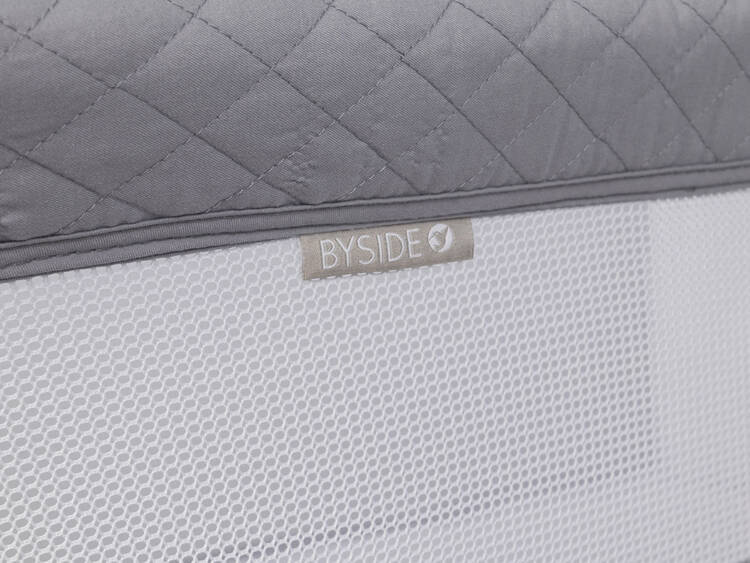 Tapicerka zewnętrzna wykonana została z modnej pikowanej tkaniny z delikatnym meszkiem. Dzięki nie łóżeczko BYSIDE prezentuje się bardzo gustownie i jest przyjemne w dotyku. W połączeniu z grafitowym stelażem z pewnością wkomponuje się w wystrój każdej sypialni.