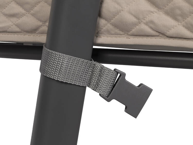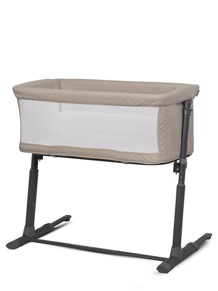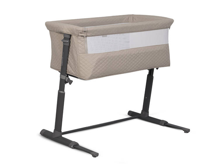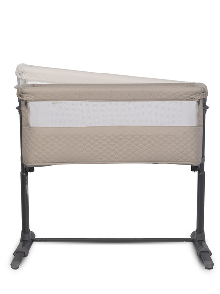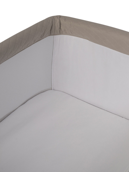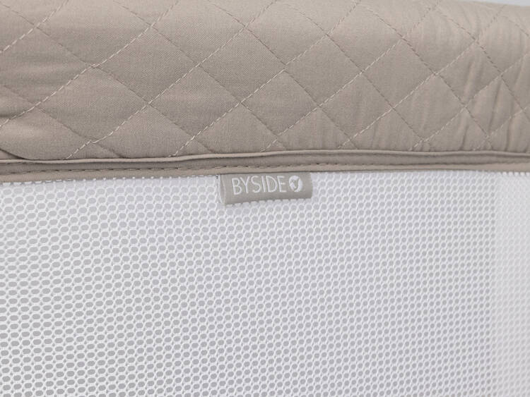 Tapicerka zewnętrzna wykonana została z modnej pikowanej tkaniny z delikatnym meszkiem. Dzięki nie łóżeczko BYSIDE prezentuje się bardzo gustownie i jest przyjemne w dotyku. W połączeniu z grafitowym stelażem z pewnością wkomponuje się w wystrój każdej sypialni.
