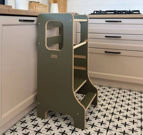 Jeśli szukasz sposobu na włączenie swojej pociechy w domowe aktywności, to Kitchen Helper Slim od Baby Wood będzie świetnym rozwiązaniem. To smuklejsza drewniany podest z zabezpieczeniem, dzięki któremu Wasz szkrab będzie mógł uczyć się „dorosłych” czynności i z pewnością poczuje się z tym doskonale. Produkt od BabyWood łączy w sobie trzy funkcje: podnóżka, podestu i kuchennego pomagacza, znajdzie więc zastosowanie na co dzień, podczas wspólnych zabaw i czynności.
