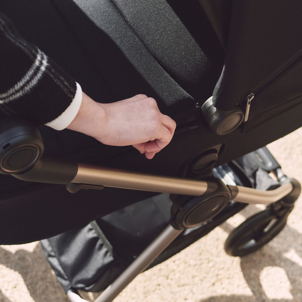 Maksymalna kompaktowość, by zmieścić się do samochodu, samolotu, a nawet do szafki. Składasz stelaż ze spacerówką w obu kierunkach, a małą spacerówkę składasz do wielkości walizki.