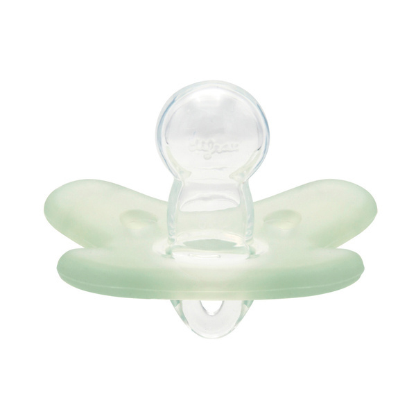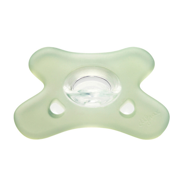 Wykonany w całości z jednego kawałka elastycznego silikonu, który jest bardzo wytrzymały, nie odkształca się, nie wysycha i nie odbarwia. Smoczek jest przyjemny dla skóry, dzięki jedwabiście miękkiej silikonowej powłoce.