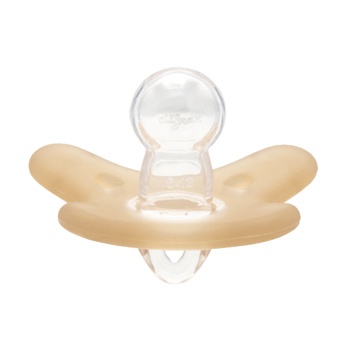 Wykonany w 100% z hipoalergicznego silikonu – bezzapachowego i bezsmakowego. Miękka gumka o symetrycznym kształcie dobrze dopasowuje się do buzi dziecka niezależnie od sposobu umieszczenia, a jego kształt uważany jest za najbardziej naturalny. Symetryczna gumka jest najłatwiej akceptowana przez większość dzieci.