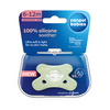 Symetryczna gumka jest najłatwiej akceptowana przez większość dzieci. Wykonany w całości z jednego kawałka elastycznego silikonu, który jest bardzo wytrzymały, nie odkształca się, nie wysycha i nie odbarwia. Smoczek jest przyjemny dla skóry, dzięki jedwabiście miękkiej silikonowej powłoce.