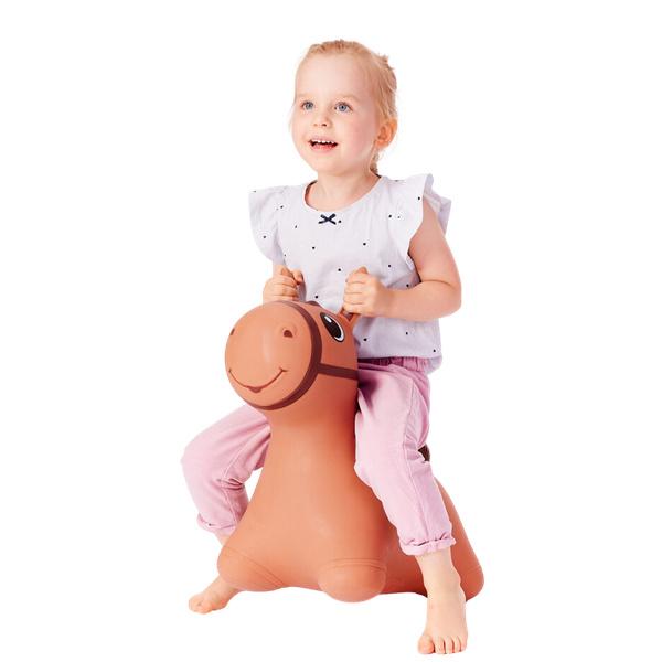Na skoczkach doskonale bryka się zarówno po domu jak i ogrodzie. Aby przyjemnie podskakiwać wystarczy tylko usiąść na nadmuchane zwierzątko, złapać je za uszy i ruszyć w podskokach do przodu. Miękkie gumowe uszy są wyjątkowo łatwe do chwytania dla malutkich rączek.