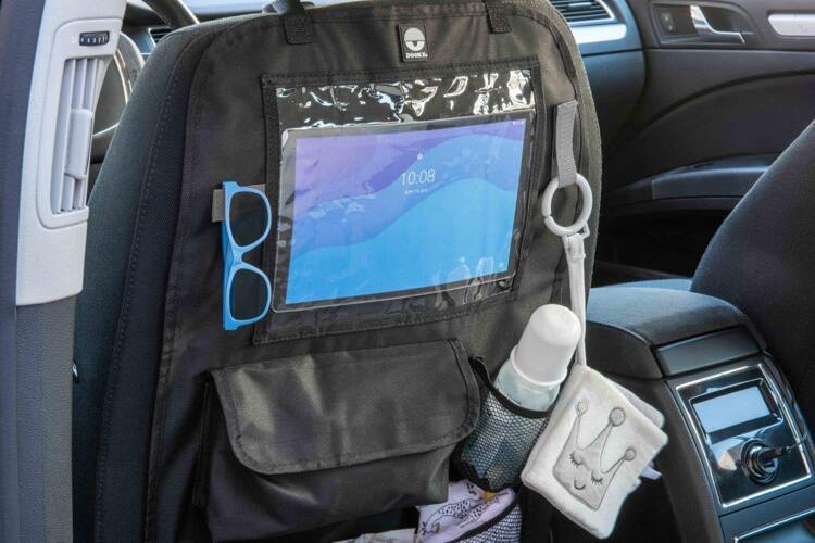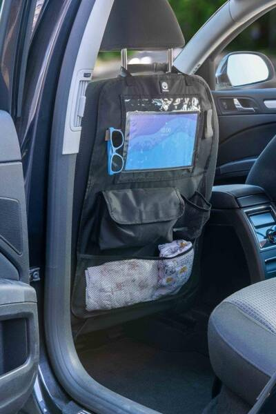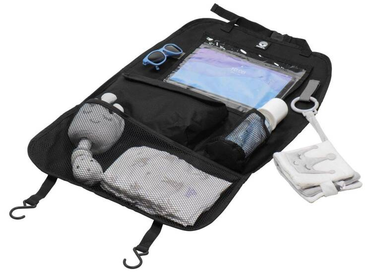 Organizer jest uniwersalny, co oznacza, że można go szybko i łatwo przymocować do każdego fotela kierowcy lub pasażera. Posiada wiele poręcznych przegródek z siatki, zamykame kieszenie i kieszeń foliową na tablet w zestawie, można przechowywać w nim wiele rzeczy. Jest tu mnóstwo miejsca na książki, zabawki, ulubioną przytulankę malucha, przekąski na drogę, okulary przeciwsłoneczne, słuchawki, kubki i chusteczki. To świetne rozwiązanie dla rodzica i dziecka, bo dzięki temu wszystkie przedmioty są w zasięgu ręki!