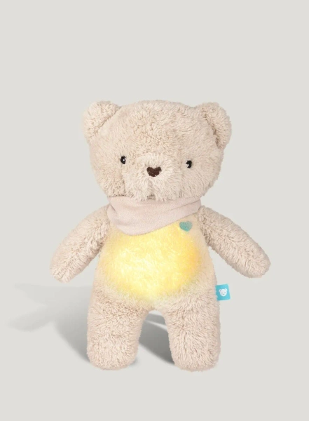 Miś odtwarza 3 rodzaje szumów: biały, brązowy (deszczu), różowy (dźwięki z brzuszka mamy) oraz 3 wyciszające melodie, które pomagają w zasypianiu. Po 30 minutach dźwięk wyłącza się automatycznie, a wbudowany czujnik snu ponownie uruchamia misia, gdy dziecko zacznie płakać.
