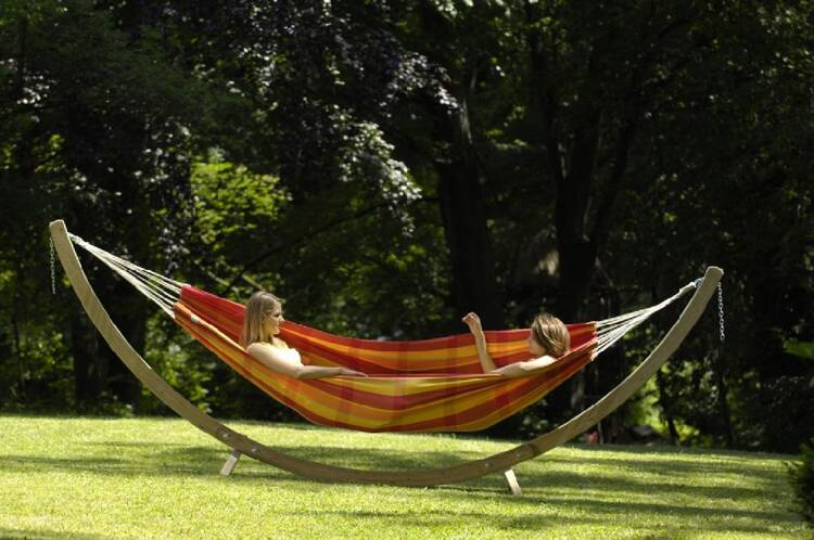 Z Brazylii, ojczyzny sjesty i celebrowania wypoczynku, pochodzi ten cudowny hamak. Jest bardzo duży i wygodny, dzięki maksymalnemu obciążeniu jest w stanie pomieścić więcej niż jedną dorosłą osobę!