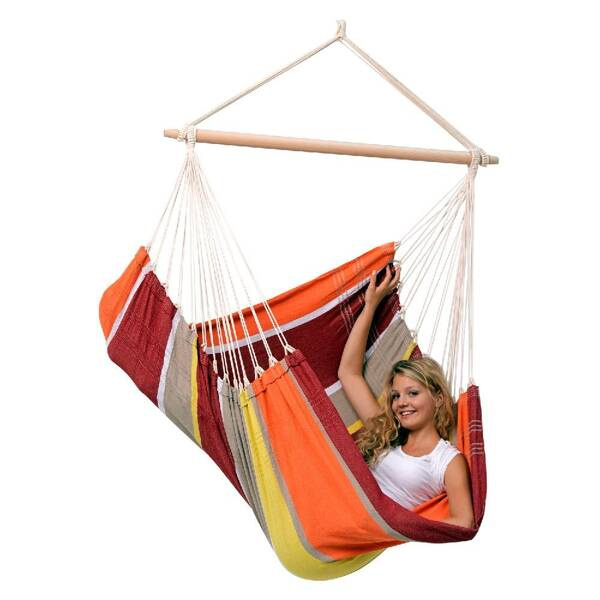 Ten fotel hamakowy tkany w Brazylii jest cudownie miły dzięki bardzo wysokiej zawartości bawełny w składzie: 85% bawełny i 15% poliestru.