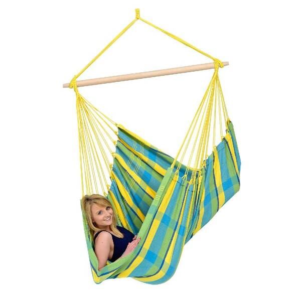 Ten fotel hamakowy tkany w Brazylii jest cudownie miły dzięki bardzo wysokiej zawartości bawełny w składzie: 85% bawełny i 15% poliestru.