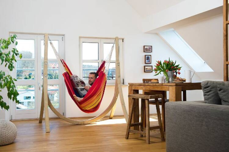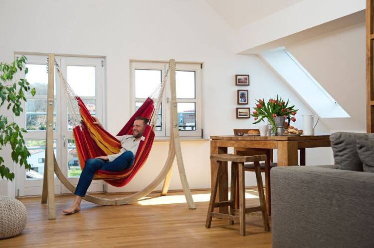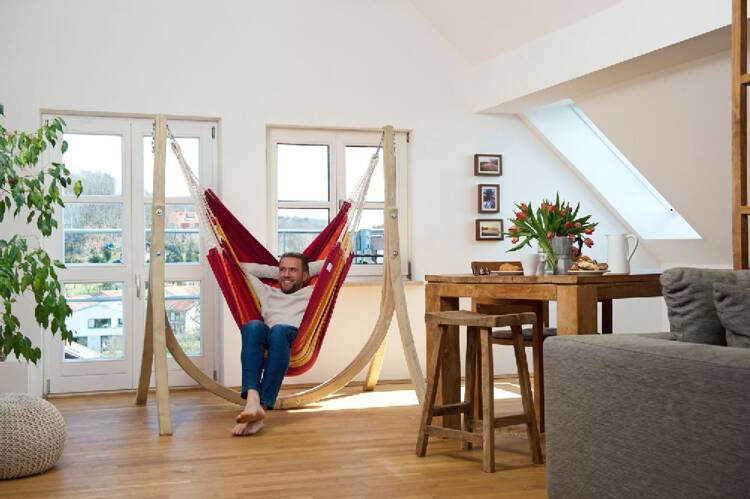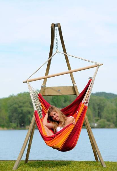 Idealnym dodatkiem do huśtawki Brasil Gigante jest Footrest - Podnóżek zapewniający komfortowe ułożenie stóp! Po prostu zawieś na drewnianym drążku od Twojego wiszącego fotela Brasil i poczuj się jak w niebie.