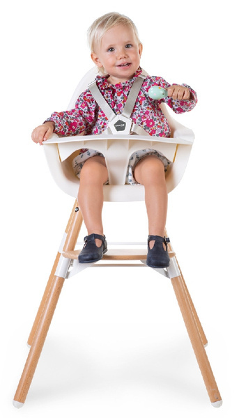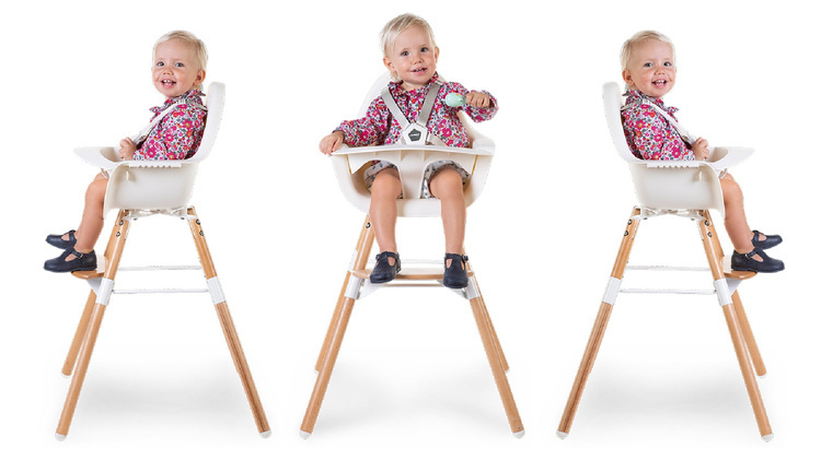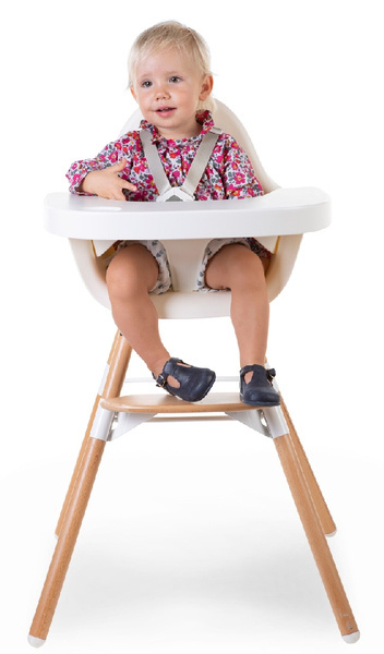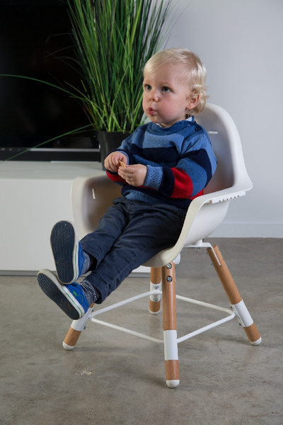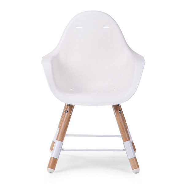 Evolu to designerskie i zarazem funkcjonalne krzesełko do karmienia, które dostosowuje się do trzech wysokości blatów: do ławy lub stoliczka dziecięcego o wysokości około 50 cm, do regularnego stołu o wysokości 75 cm oraz odpowiednie jest do wyspy kuchennej o wysokości blatu 90 cm (po dokupieniu podwyższenia - dodatkowych nóżek). Siedzisko wykonane z pracującego plastiku jest szerokie i bardzo wygodne. Krzesełko posiada 5-stopniowe pasy bezpieczeństwa. Zalecane jest dla dzieci od 6 miesiąca do 6 roku życia.