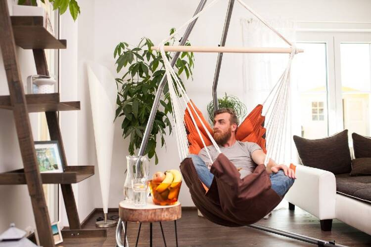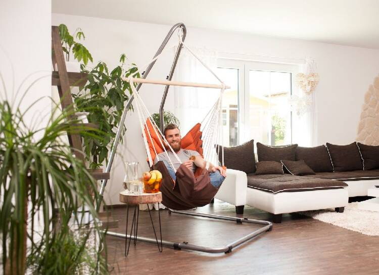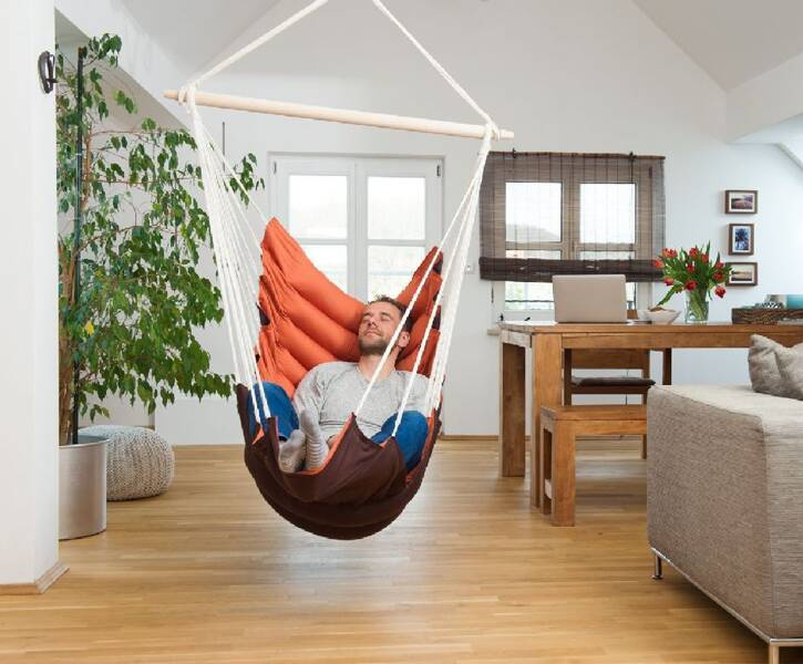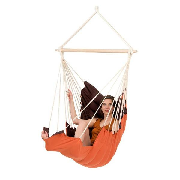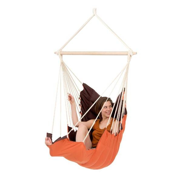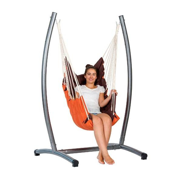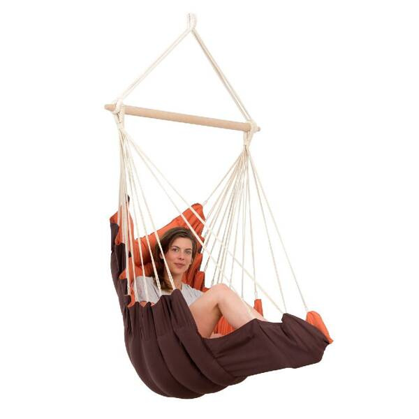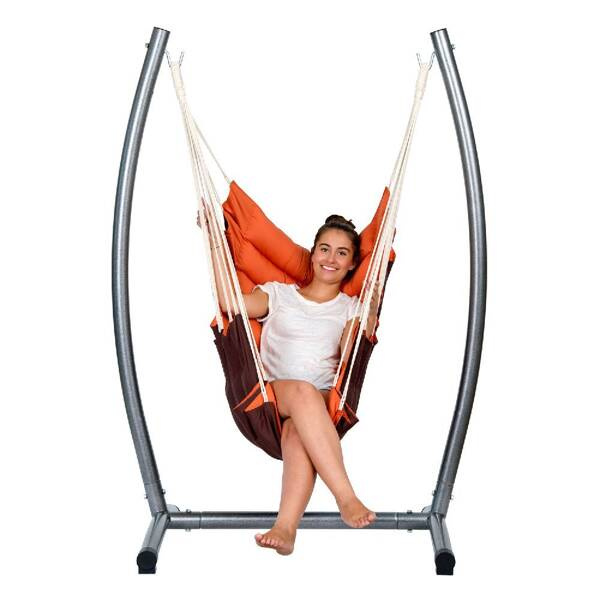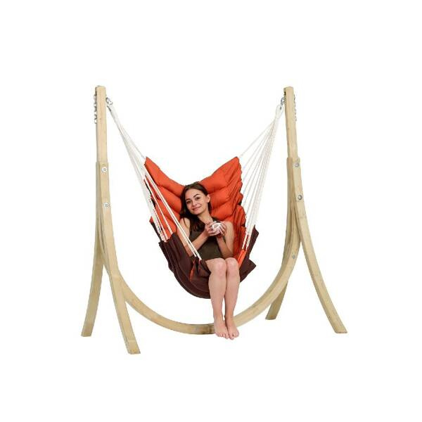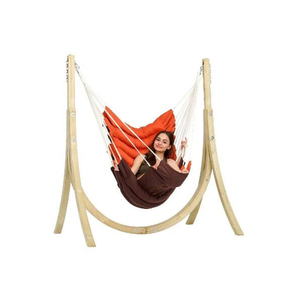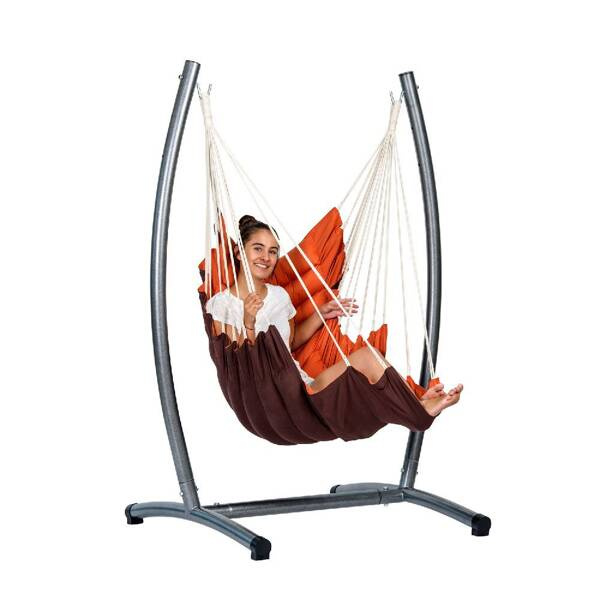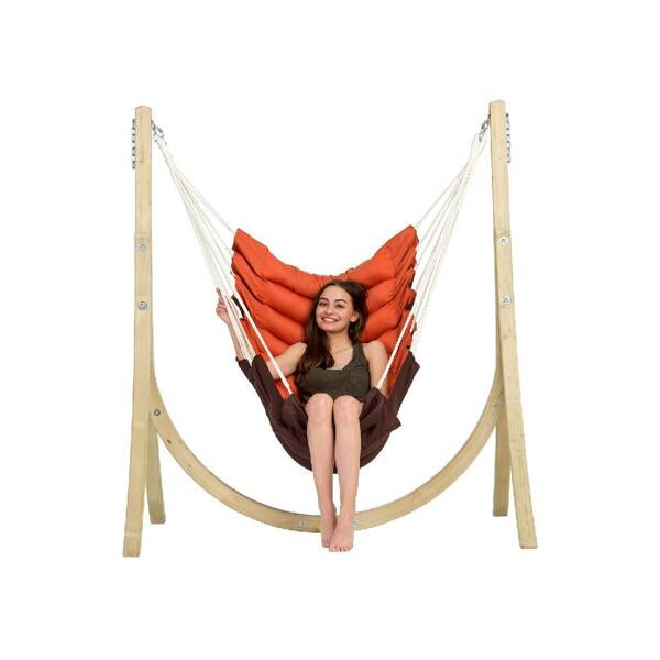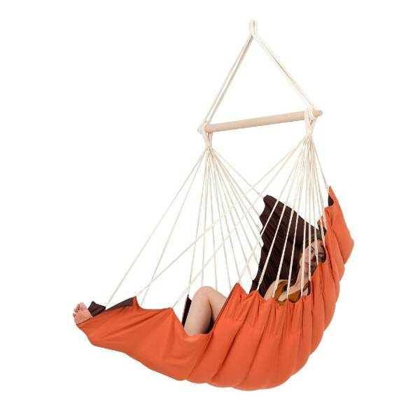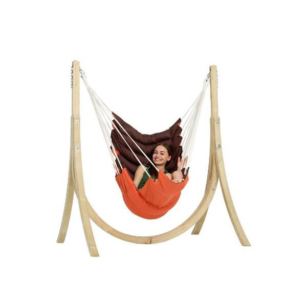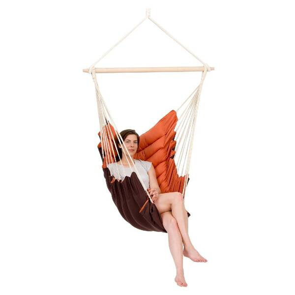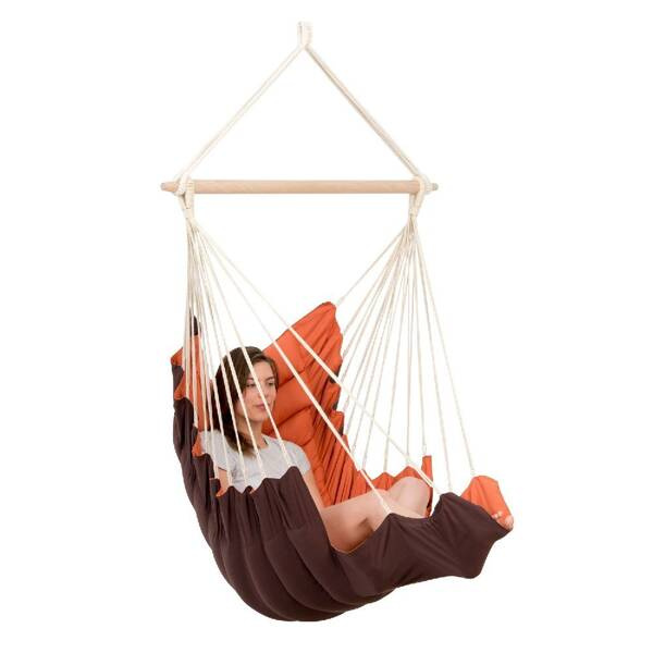 Fotel hamakowy w amerykańskim stylu. Posiada szeroko rozłożone siedzisko i komfortowy zintegrowany podnóżek. Można używać go obustronnie.