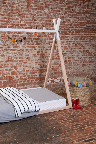 Spanie nigdy nie było tak zabawne! Rama do łóżka w kształcie namiotu TIPI wprowadzi wyjątkowy klimat do pokoju Twojego dziecka. Możesz na niej zawiesić lampki, dekoracje, a dzięki dedykowanemu, materiałowemu pokryciu, przekształcisz ramę w prawdziwy namiot-wigwam. Rama wykonana jest z naturalnego drewna. Stelaż i materiał dostępne oddzielnie.