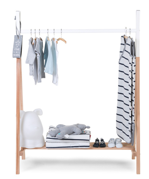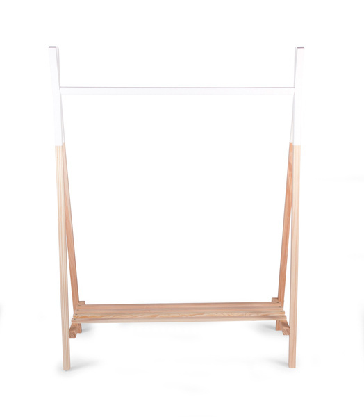 Wieszak na ubranka i akcesoria dziecięce w pięknym stylu TIPI. Ten funkcjonalny wieszak jest średnich rozmiarów, odpowiedni do każdego pokoiku i posiada półkę, na której można przechować walizeczkę czy pojemniki ze skarbami malucha.