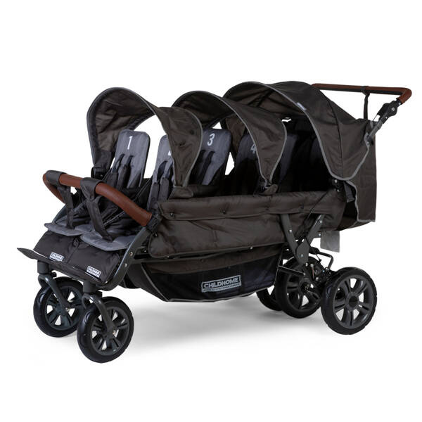 Childhome wózek sześcioosobowy Sixseater NEW Autobrake z rączką z eko skóry, to świetne rozwiązanie dla żłobków i przedszkoli. Dzięki naszemu pojazdowi możesz zabrać na raz nawet szóstkę dzieci na spacer. Zalecany wiek dzieci od 6 miesięcy, waga do 15 kg.