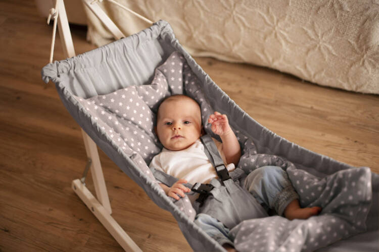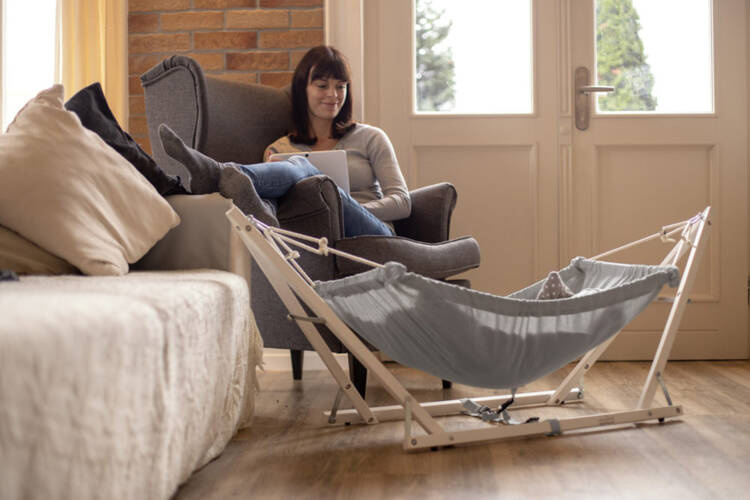 Dzięki hamaczkowi dziecko może być blisko swoich rodziców w dowolnym miejscu w domu, w ogrodzie lub w podróży.