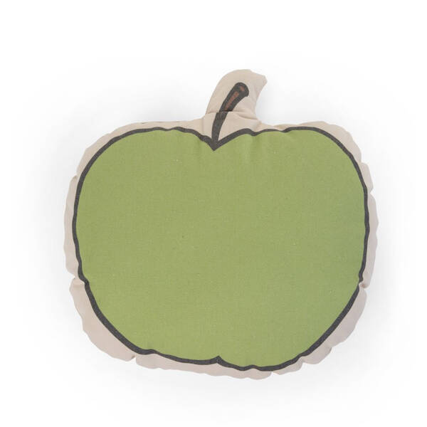 Poduszka dekoracyjna w kształcie jabłka uszyta z najwyższej jakości bawełny kanwas. Pięknie ozdobi każde wnętrze. Idealna do przytulania, zabawy na podłodze i drzemek. Stwórz całą owocową kolekcję z pozostałymi poduszkami z kolekcji.