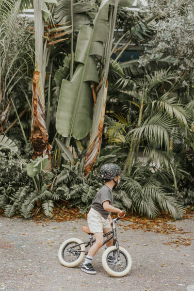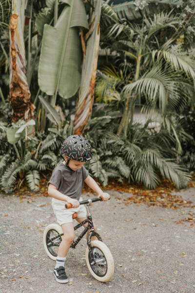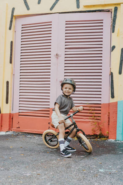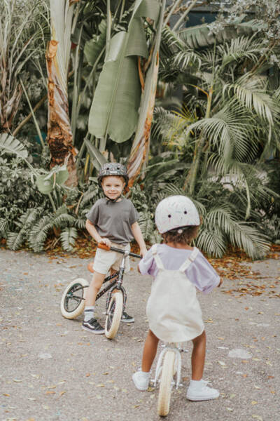 Regulowany kask rowerowy dla dzieci Banwood zabezpiecza malucha podczas jazdy na rowerze i innych aktywności fizycznych.