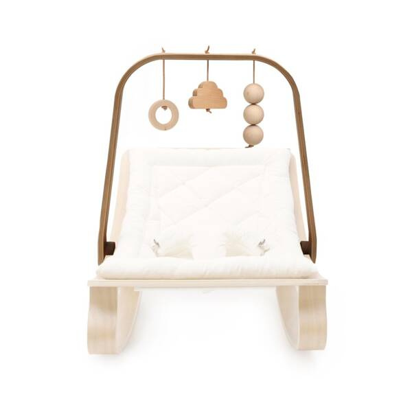Piękny, drewniany pałąk do bujaka LEVO, urzeka swoją prostotą i funkcjonalnym designem. Zawarte w komplecie drewniane zabawki, zachęcają malucha do aktywności, stymulując rozwój i koordynację, już od urodzenia.