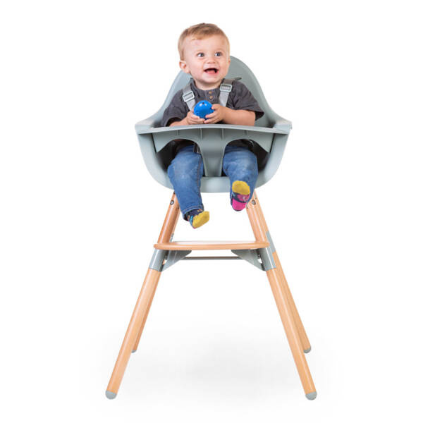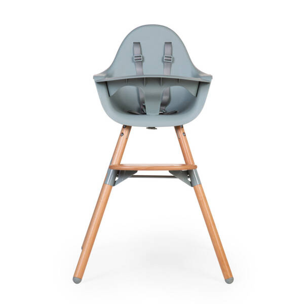 Evolu to designerskie i zarazem funkcjonalne krzesełko do karmienia, które dostosowuje się do trzech wysokości blatów: do ławy lub stoliczka dziecięcego o wysokości około 50 cm, do regularnego stołu o wysokości 75 cm oraz odpowiednie jest do wyspy kuchennej o wysokości blatu 90 cm (po dokupieniu podwyższenia - dodatkowych nóżek). Siedzisko wykonane z pracującego plastiku jest szerokie i bardzo wygodne. Krzesełko posiada 5-stopniowe pasy bezpieczeństwa. Zalecane jest dla dzieci od 6 miesiąca do 6 roku życia.