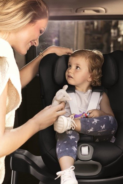 Fotelik Sirona S I-size posiada innowacyjny system umożliwiający obrót siedziska dookoła własnej osi. Rodzic może okręcić siedzisko przodem do drzwi i swobodnie umieścić maluszka w foteliku oraz zapiąć pasy bezpieczeństwa, co znacznie ułatwia korzystanie i podnosi komfort użytkowania.