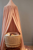 Baldachim można zawiesić nad łóżkiem, lub wykorzystać do stworzenia przytulnej przestrzeni w dziecięcym kąciku zabaw. Miękka tkanina wykonana jest w 100% z bawełny organicznej.