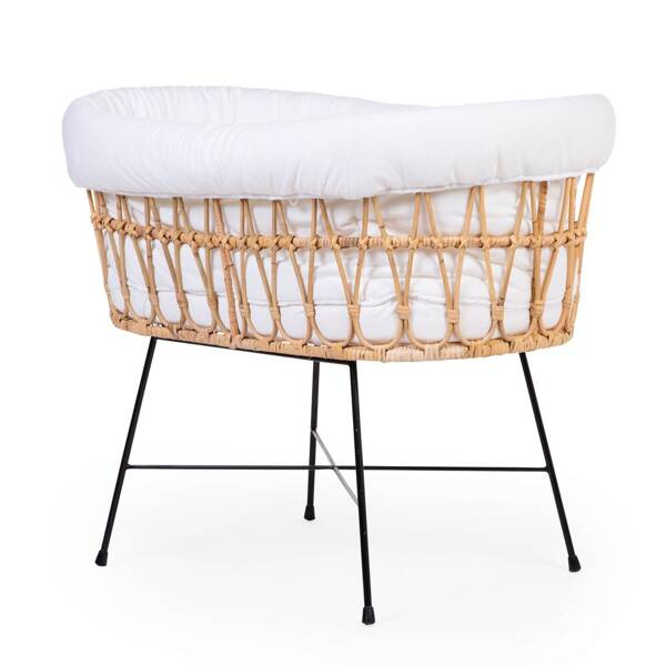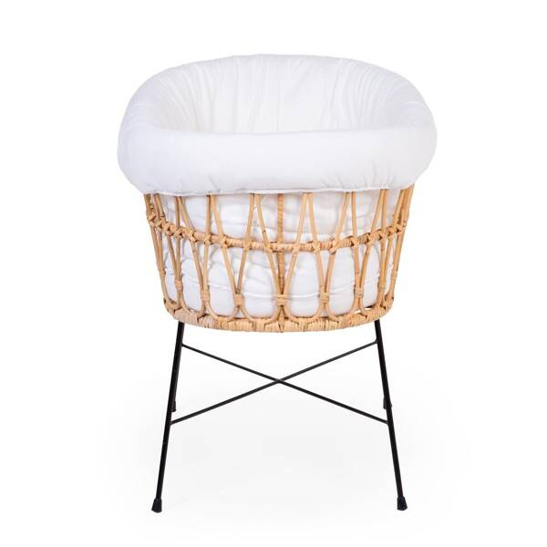 Piękne łóżeczko wykonane z naturalnego, najwyższej jakości rattanu, osadzone na czarnych metalowych nogach, wniesie do Twojego domu niepowtarzalny klimat. Mebel jest bardzo stabilny dzięki metalowej konstrukcji, a okrągły kształt i staranne wykończenie sprawią, że dziecko będzie czuło się w nim komfortowo i przytulnie. Łóżeczko może być używane od urodzenia do 6 miesiąca życia. W zestawie ochraniacz wyściełający spód i boki oraz owalny materac ze zdejmowanym pokrowcem.
