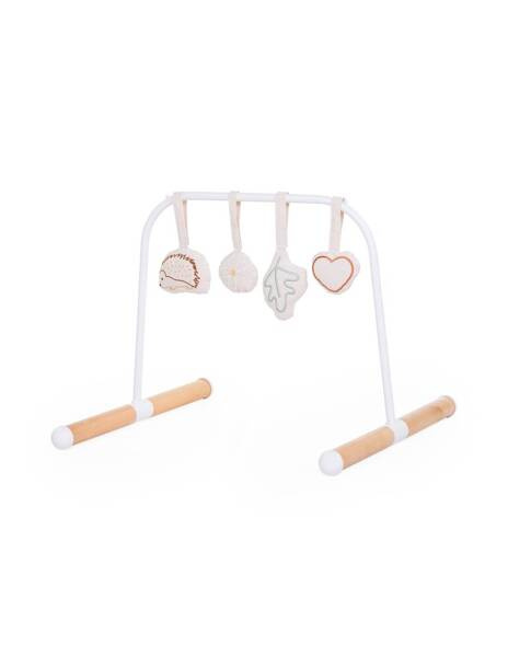 Baby gym doskonale rozwija wczesne umiejętności motoryczne maluszka, jak sięganie i chwytanie, a także koordynację wzrokowo-ruchową. Każda zabawka ma inny, zabawny wzór.