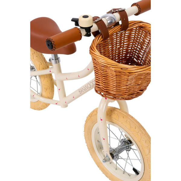 Rowerek wyposażony jest w uroczy dzwonek oraz stylowy kosz wiklinowy, w którym zmieszczą się najpotrzebniejsze skarby Twojego malucha.