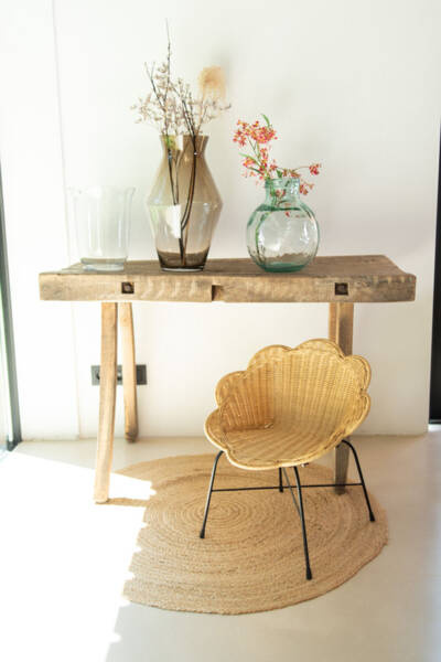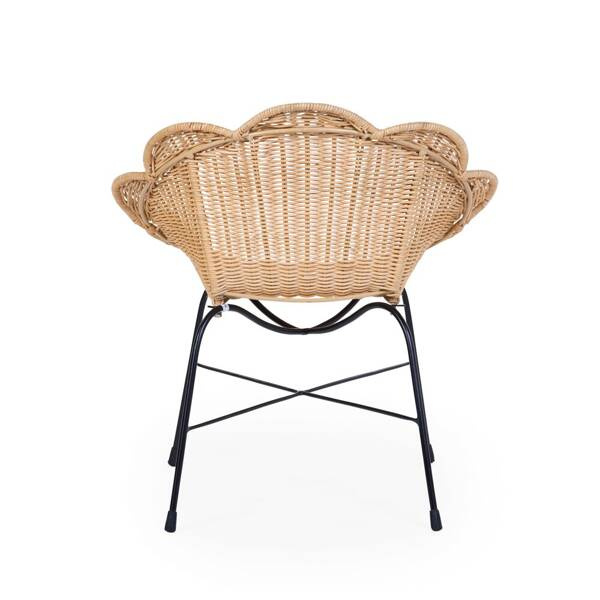 Modne rattanowe krzesełko w kształcie kwiatka świetnie prezentuje się w każdym wnętrzu. Krzesełko jest wygodne, lekkie i łatwe do przenoszenia. To idealna dekoracja do salonu, pokoju dziecięcego czy pokoju zabaw! Wysokość siedziska to 27 cm.