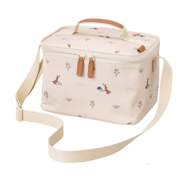 Pudełko zamykane jest na suwak, posiada wygodny uchwyt do noszenia w dłoni oraz pasek naramienny.