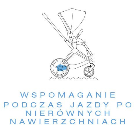 Wózek dostosowuje prędkość jazdy gdy schodzimy ze stromej nawierzchni, zwalnia i ułatwia nam zejście. Nie ma znaczenia czy spacerujesz z noworodkiem, czy o wiele cięższym 4-latkiem, komfort będzie taki sam.