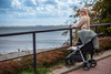 Wózek Wave fenomenalnie dopasowuje się do wzrostu prowadzącego, dzięki łatwej w regulacji rączce, otulonej elegancką ecoskórą.