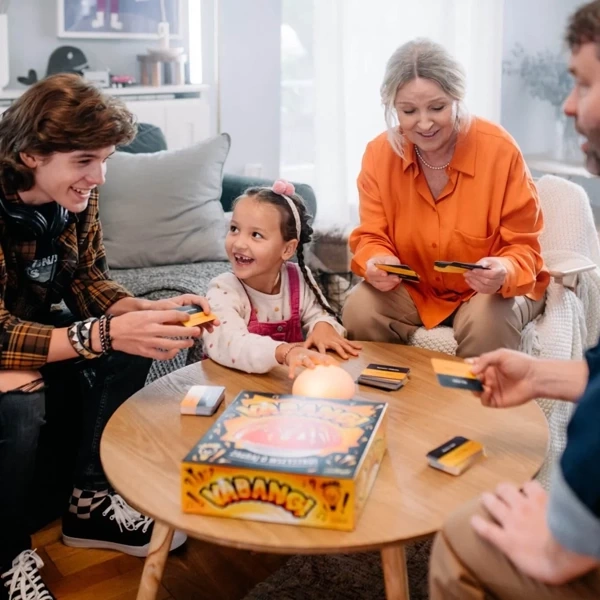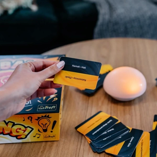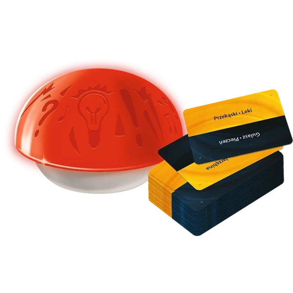Gracz, który jako pierwszy wymyśli pytanie, które łączy wyrazy z karty, naciska przycisk. Wtedy on zacznie świecić i odtwarzać melodię. W tym czasie każdy z Was może udzielić swojej odpowiedzi na zadane pytanie i nacisnąć przycisk, aby przejąć punkt od przeciwnika. Każdy z Was ma tylko kilka sekund na udzielenie 2 szybkich odpowiedzi!