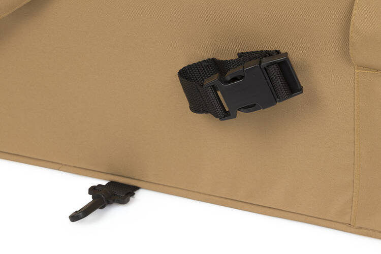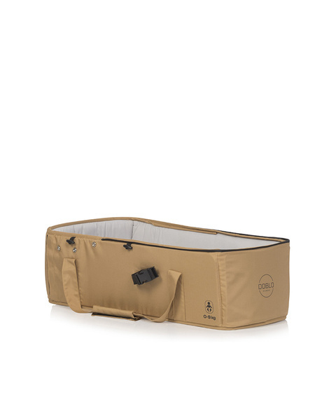 Gondolę montuje się na rozłożonym na płasko siedzisku wózka za pomocą systemu zapięć. Gondola do wózka DOBLO posiada aż 2 niezależne systemy mocowań: karabińczyki oraz taśmy zaciskowe. Dzięki nim, gondola jest pewnie osadzona w wózku i gwarantuje bezpieczeństwo dziecku.