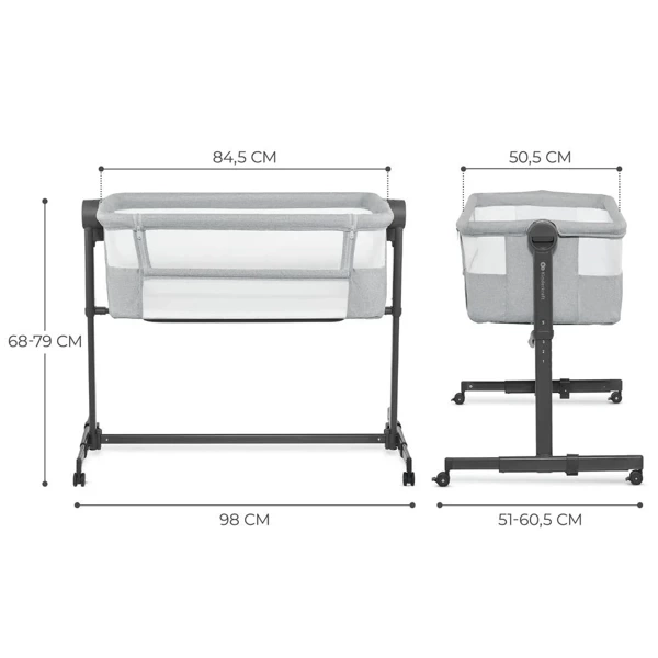 Dzięki czterem kółkom z hamulcem łóżeczko możesz łatwo przesunąć z pokoju do pokoju. Umożliwi Ci to stałą opiekę nad dzieckiem oraz zachowanie bliskości z maluchem w różnych porach dnia: od snu przy Twoim łóżku po drzemkę za dnia w dowolnym miejscu w mieszkaniu.