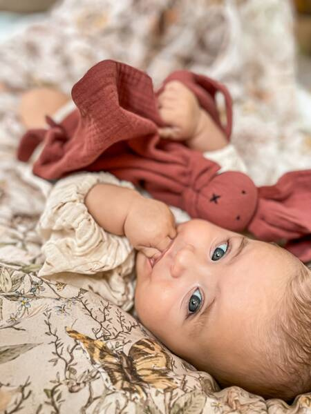 Wszystkie Muślinowe Króliki Doudou Makaszka są szyte ręcznie w Polsce z najwyższą starannością i dbałością o szczegóły.