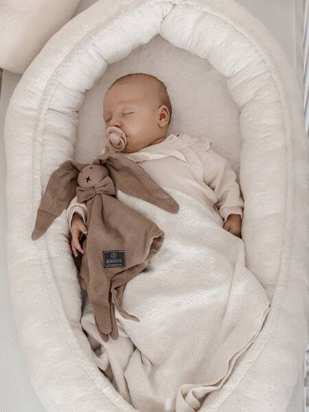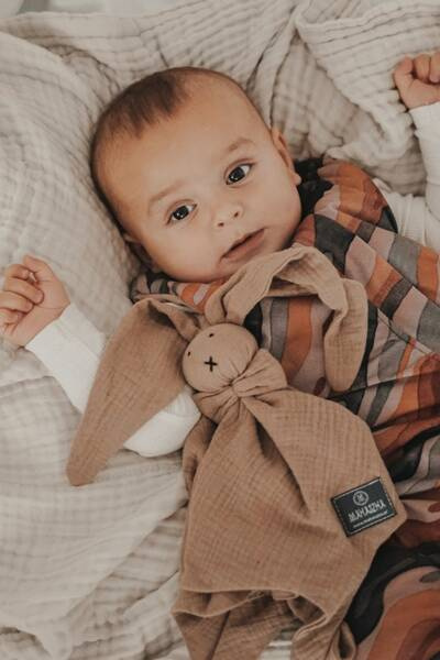 Dla najmłodszych miłośników Makaszki miękki króliczek do przytulania z bawełnianego muślinu. Zalecamy rodzicom spanie z króliczkiem przez kilka dni, tak aby tkanina przesiąknęła ich zapachem. Maleństwo wtulając się w znany mu zapach rodziców czuje się bezpiecznie.