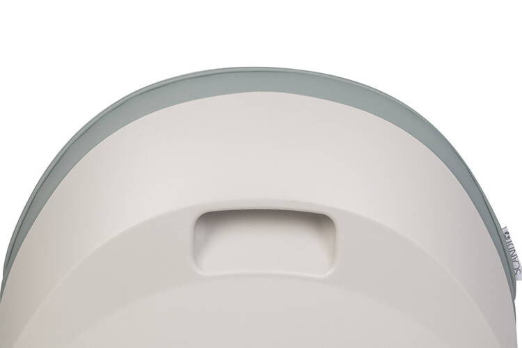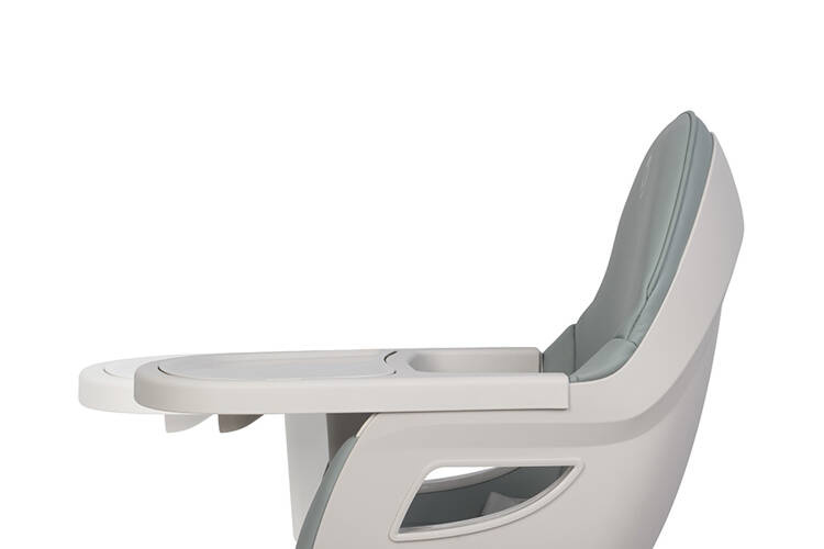 Do dyspozycji dziecka są łącznie 2 tacki: główna i zewnętrzna. Tacka główna posiada regulację wysunięcia. Można ją ustawić w 3 pozycjach w zależności od gabarytów dziecka. Tacka zewnętrzna została wykonana ze śliskiego tworzywa, które jest łatwe w czyszczeniu. Można ją też z łatwością zdemontować w celu umycia.
